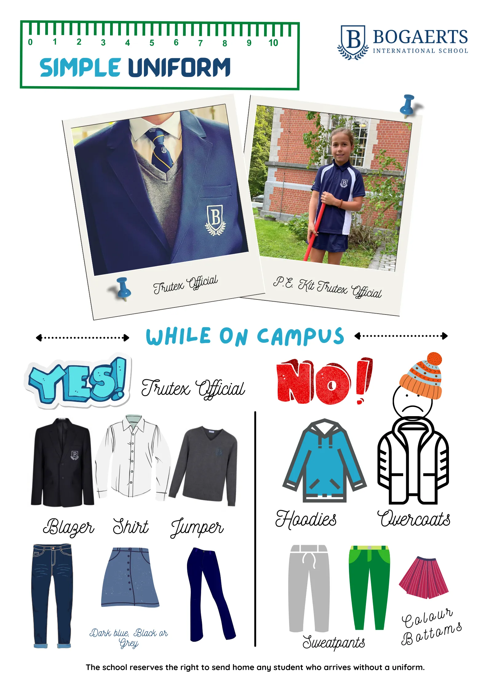 If a student does not have their uniform on arrival, a parent will be contacted immediately to bring appropriate clothing.